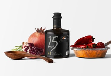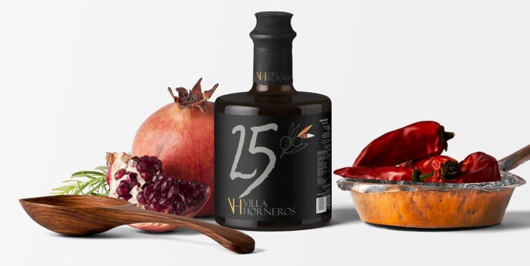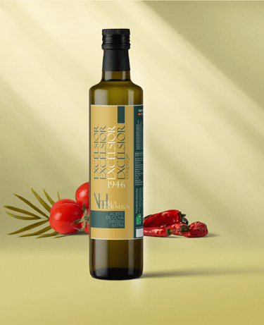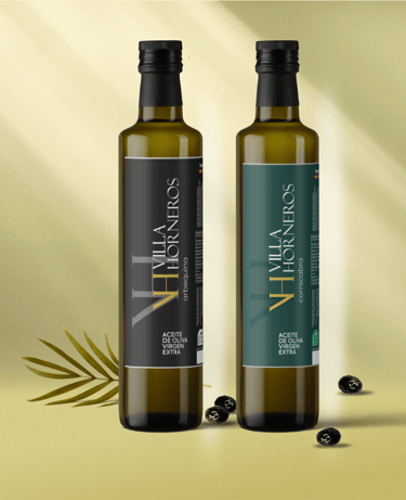 Aceite de oliva virgen extra de olivo cornicabra y arbequina en plantación tradicional y superintensiva.
